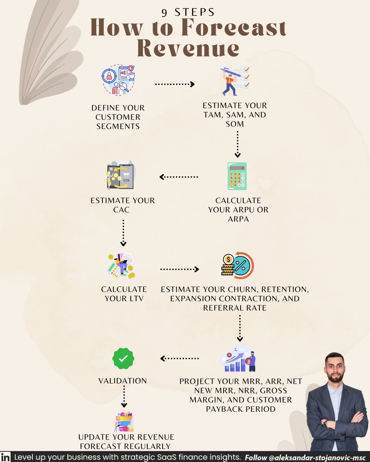 So, how do you forecast revenue in this ever-changing landscape? You need a bottom-up approach that starts with your customer data. Here are 9 steps to guide you: