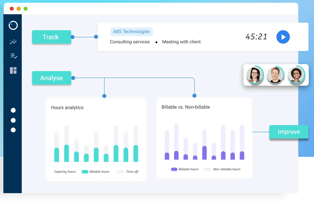 Time Analytics is a comprehensive time tracking and productivity tool designed for professional services to manage billable hours and optimize bill rates.