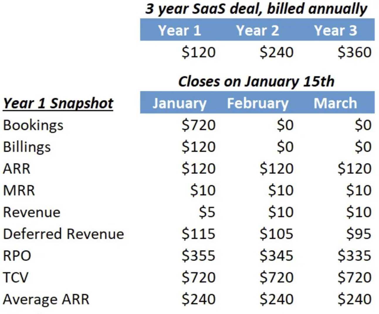 RPO (Remaining Performance Obligation): If anyone ever asks a sales person about RPO, run for the door. It’s the TCV (see below) that’s not revenue yet