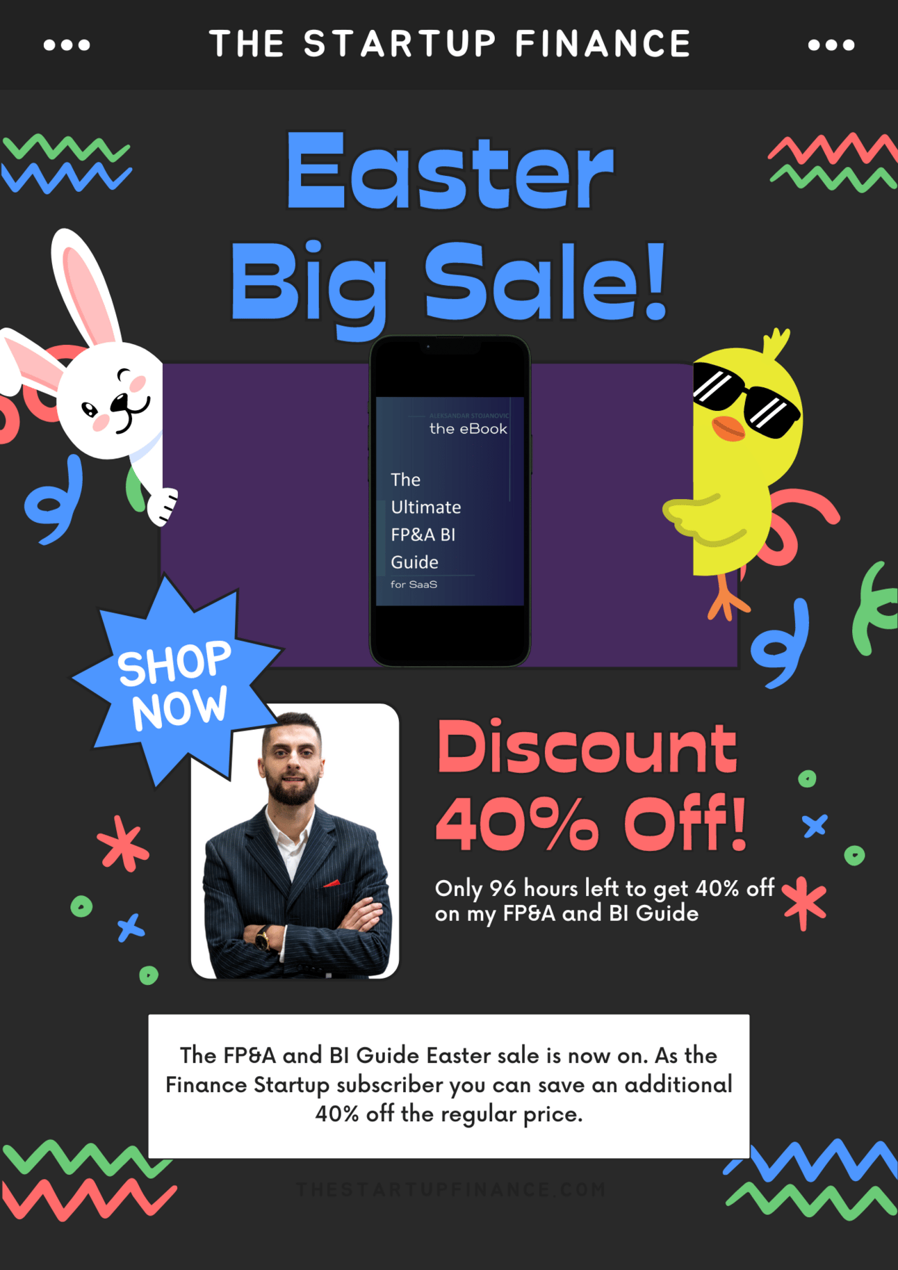 The FP&A and BI Guide Easter sale is now on. As the Finance Startup subscriber you can save an additional 40% off the regular price. Details below.